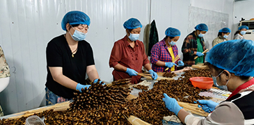 近日,河南省駐馬店市泌陽(yáng)縣郭集鎮(zhèn)西馬莊村的綠色家園金蟬合作社里一片熱鬧景象,數(shù)十名村民圍坐在一起,熟練地將剛出土的金蟬穿成一串串,金黃的蟬蟲(chóng)在手中流轉(zhuǎn),空氣中彌漫著豐